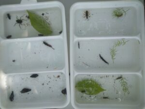 ホトケドジョウも好きですが、私のお気に入りはトビケラの幼虫。イモムシみたいな形と石や砂、落ち葉などを使ってミノムシみたいに巣をつくるところがとってもかわいいです。